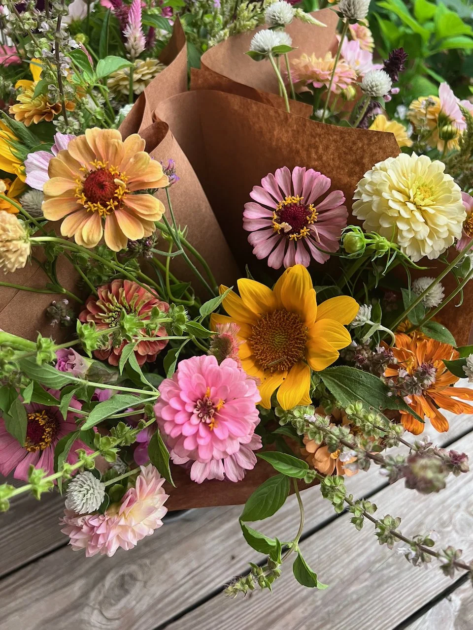 Farmer’s choice on color palette and flower varieties, meaning that the bouquet may not resemble one you’ve seen pictured, and the color scheme and flowers will vary.